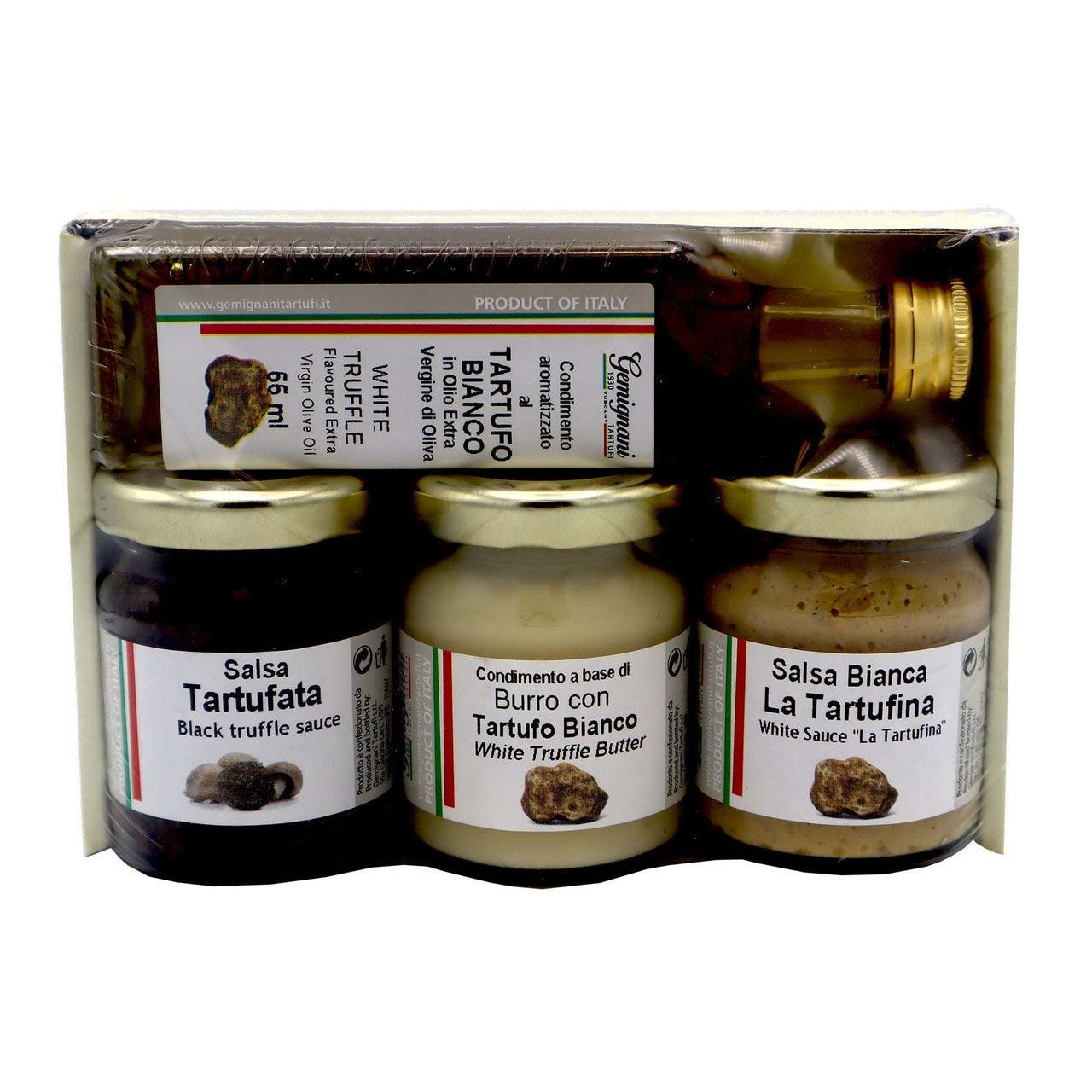 Das Trüffelspezialitäten Set von Gemignani Tartufi vereint vier ausgewählte Delikatessen aus der Toskana: