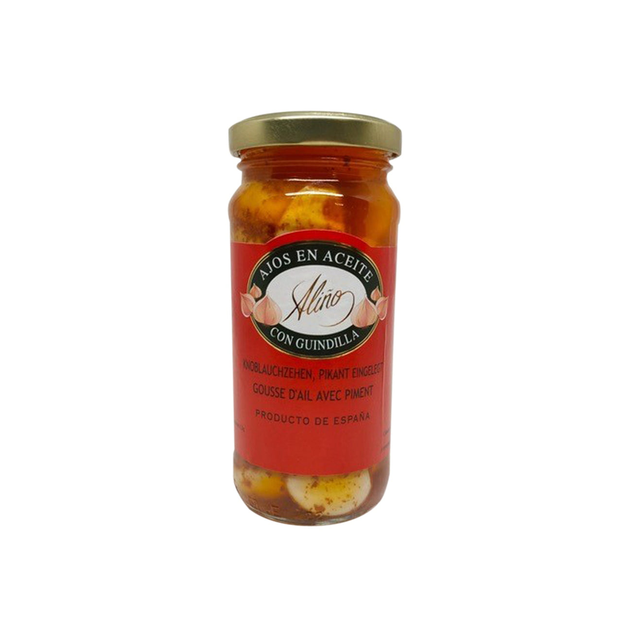 Würzig eingelegter Knoblauch ist aus der mediterranen Küche nicht wegzudenken. Die Knoblauchzehen in Öl bringen spanisches Flair auf den Teller – ob zu Antipasti, zu scharf gebratenen Gambas oder als aromatische Ergänzung zu Lammfilet und gegrilltem Gemüse.