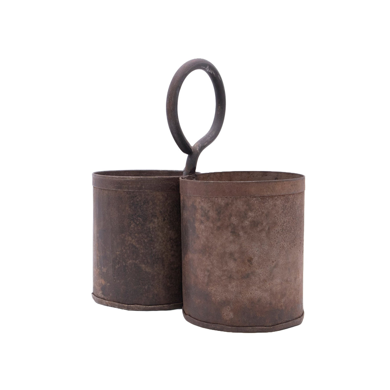 Dieser dekorative Besteck- und Getränkehalter besticht durch die Kombination von rustikalem Charme und funktionaler Eleganz. Er ist aus hochwertigem Eisen gefertigt und mit einer detailreichen Rost-Optik veredelt, wodurch jedes Stück zu einem Unikat wird. Mit den Maßen von ca. 21,5 × 11 × 23 cm bietet er ausreichend Platz für Besteck, Servietten oder Flaschen und ist somit ein praktischer Begleiter im Alltag.
