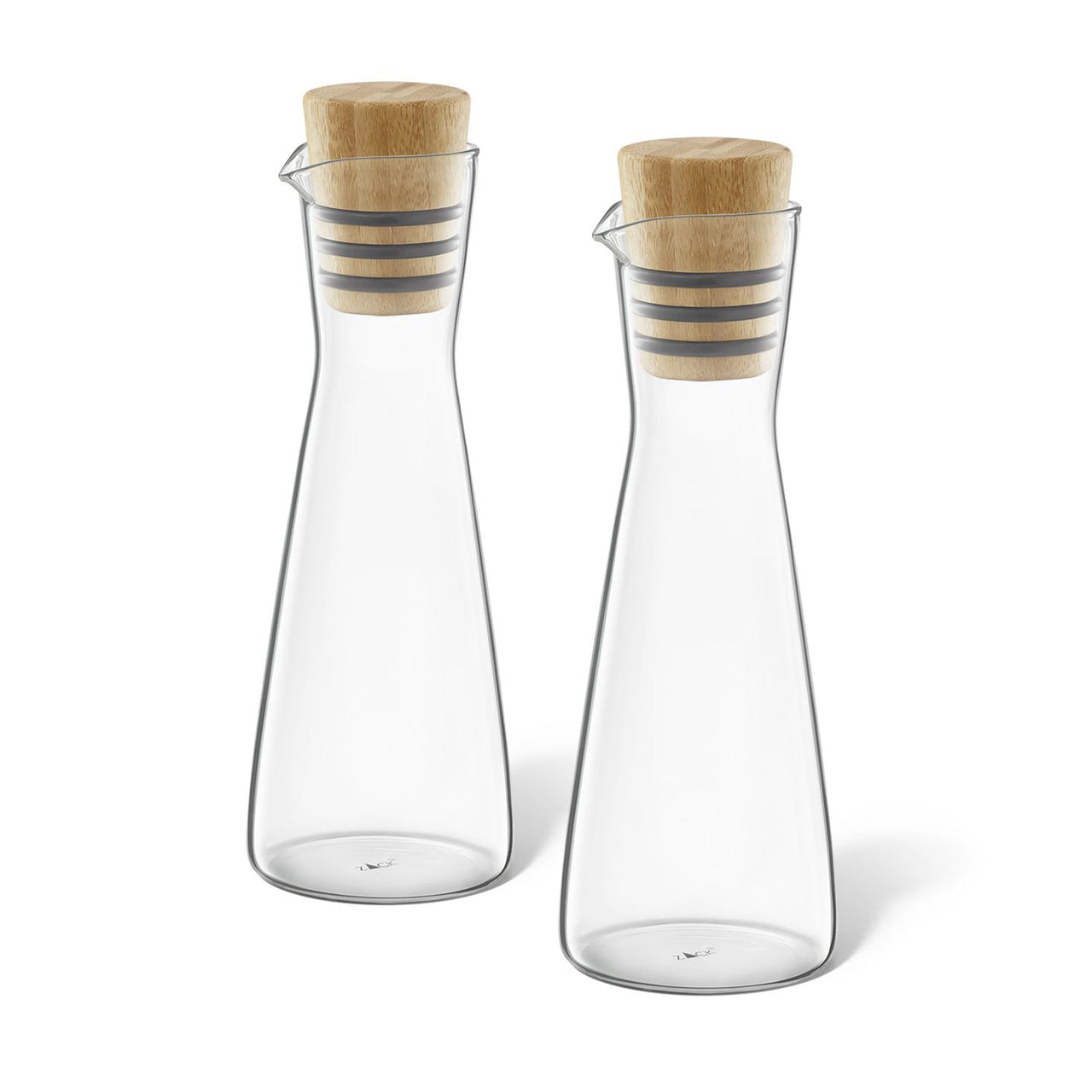 Das Bevo Essig- & Ölflaschen-Set von Zack ist das passende Accessoire für jede Küche. Die Flaschen sind aus hitzebeständigem Borosilikatglas gefertigt und mit eleganten Verschlüssen aus nachhaltigem, geöltem Bambus ausgestattet. Damit vereinen sie Funktionalität und Stil. Das Set verfügt über ein Fassungsvermögen von 250 ml pro Flasche und eignet sich somit ideal für die Aufbewahrung von Essig und Öl. Die klaren Linien und das schlichte Design machen dieses Set zu einem Blickfang auf jedem Esstisch.