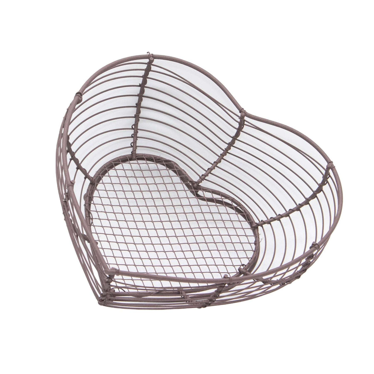 Dieser Drahtkorb in Herzform verbindet dekorativen Charme mit praktischer Funktionalität. Mit den Maßen 22 x 23 x 8 cm bietet er ausreichend Platz für Schmuck, Accessoires oder kleine Dekoartikel. Er ist aus feinem Metall gefertigt und in filigraner Herzform gestaltet. Somit ist er ein stilvolles Aufbewahrungselement mit romantischem Flair. Die luftige Drahtstruktur verleiht jeder Einrichtung eine verspielte und gleichzeitig elegante Note.