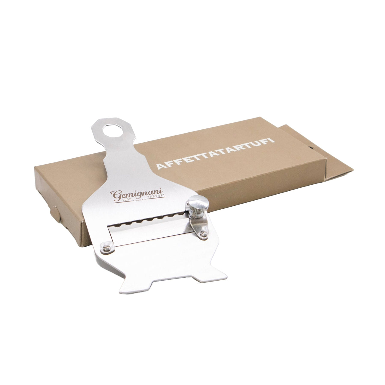 Der Trüffelhobel von Gemignani Tartufi ist ein unverzichtbares Küchenaccessoire für alle, die Trüffel stilvoll und präzise genießen möchten. Er ist aus hochwertigem Edelstahl gefertigt und ermöglicht das feine Schneiden von Trüffeln in gleichmäßige Scheiben. Damit ist er ideal als Topping für Pasta, Risotto oder Carpaccio geeignet.