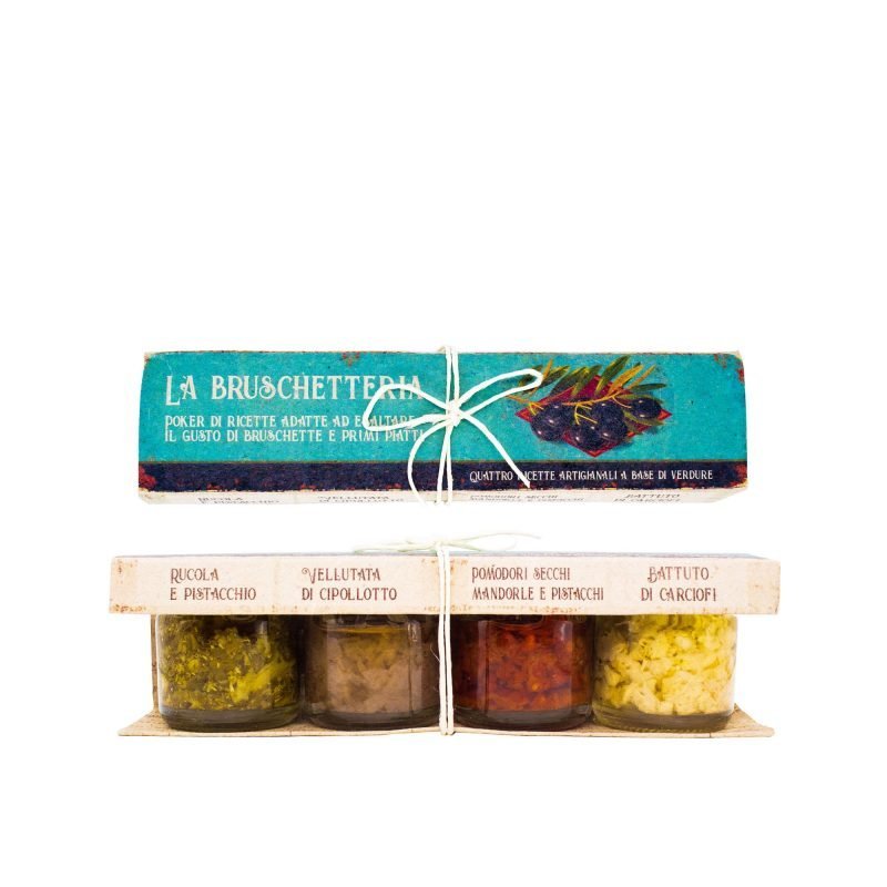 Es enthält vier Gemüseaufstriche nach traditionellem Rezept aus der Region Kalabrien: