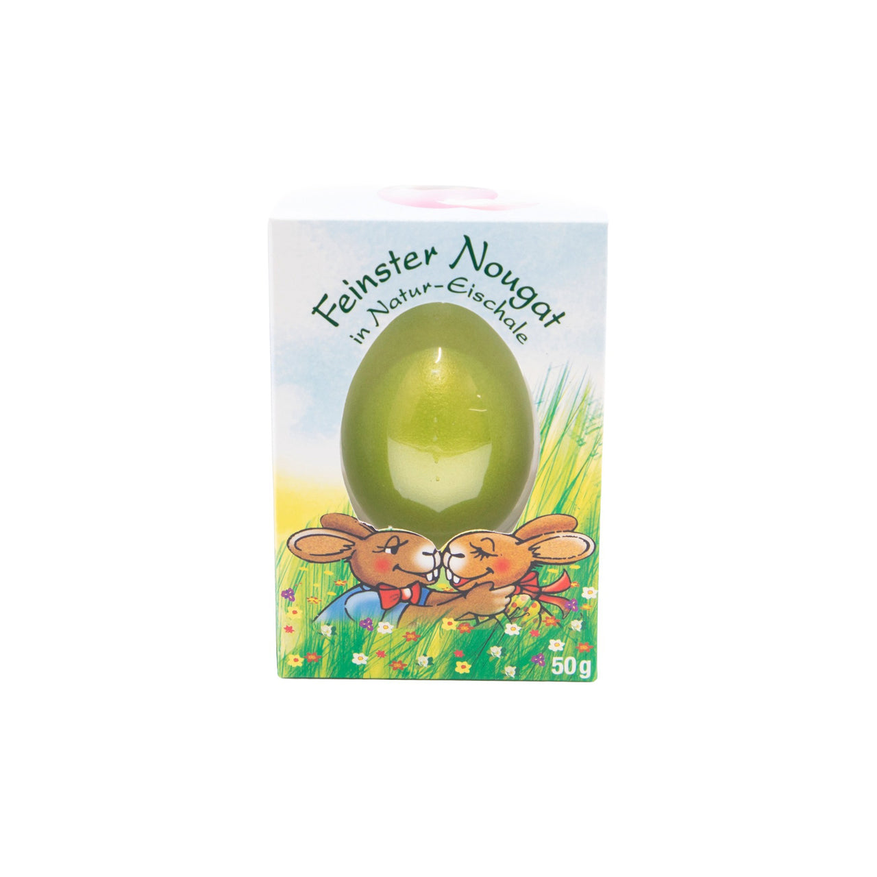 Dieses Nougat-Ei in sanftem Pastellgrün wirkt besonders natürlich und ausgewogen. Die echte Eierschale bildet die Basis, während die dezente Farbgebung für eine elegante, frische Note sorgt. Wer ein pastellgrünes Nougat-Ei in echter Eierschale sucht, findet mit diesem Produkt eine stilvolle Delikatesse mit Charakter.