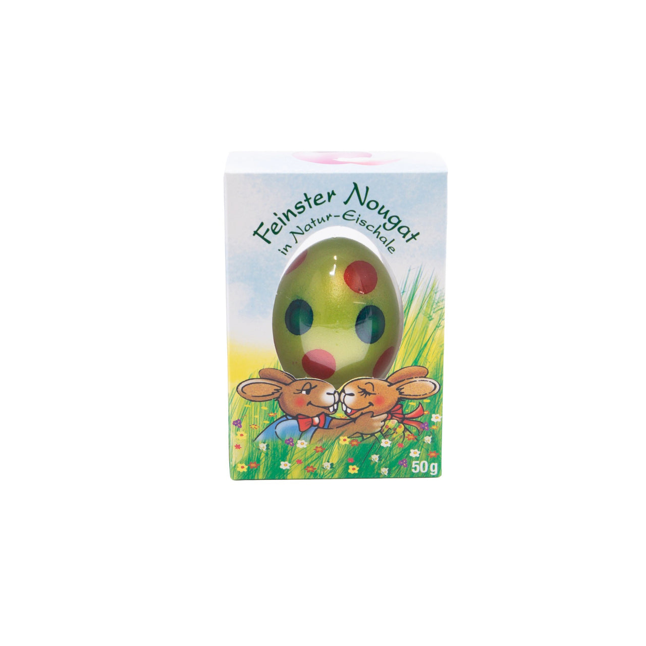 Frisches Grün, verspielte Punkte und ein cremiger Kern aus Haselnuss-Nougat – dieses Nougat-Ei bringt sofort Frühlingsstimmung auf den Tisch. Die leuchtend grüne Eierschale wirkt natürlich und modern zugleich und setzt im Osternest einen lebendigen Farbakzent. Wer gezielt ein grünes Nougat-Ei in echter Eierschale sucht, findet hier eine besondere Kombination aus Design und Genuss.