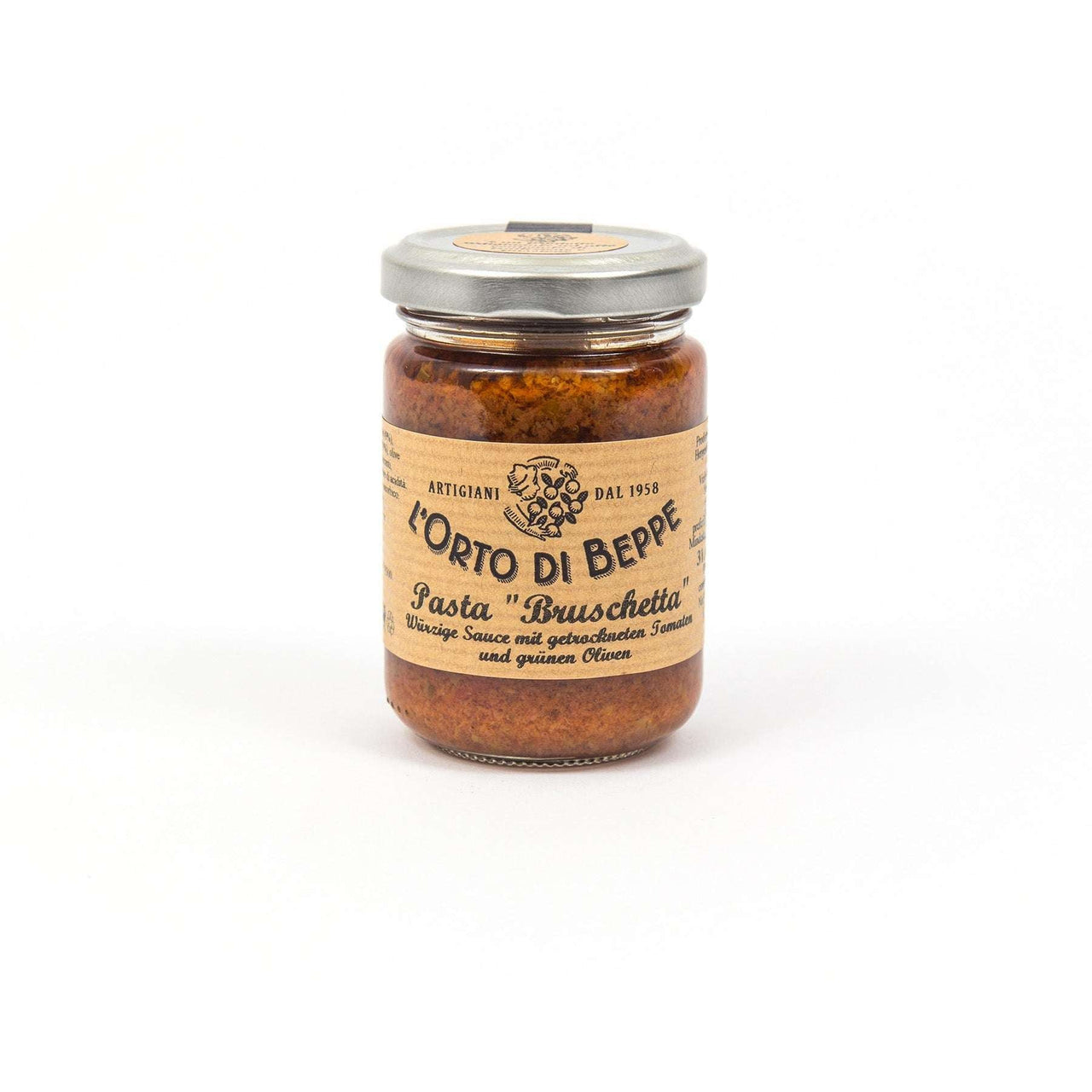 Diese Bruschetta-Soße von L’Orto di Beppe bringt echtes Mittelmeer-Feeling auf den Teller. Sie wird aus sonnengetrockneten Tomaten, aromatischen Oliven, ausgewählten Kräutern und nativem Olivenöl hergestellt und überzeugt mit intensiven Aromen und einer fein-würzigen Note.