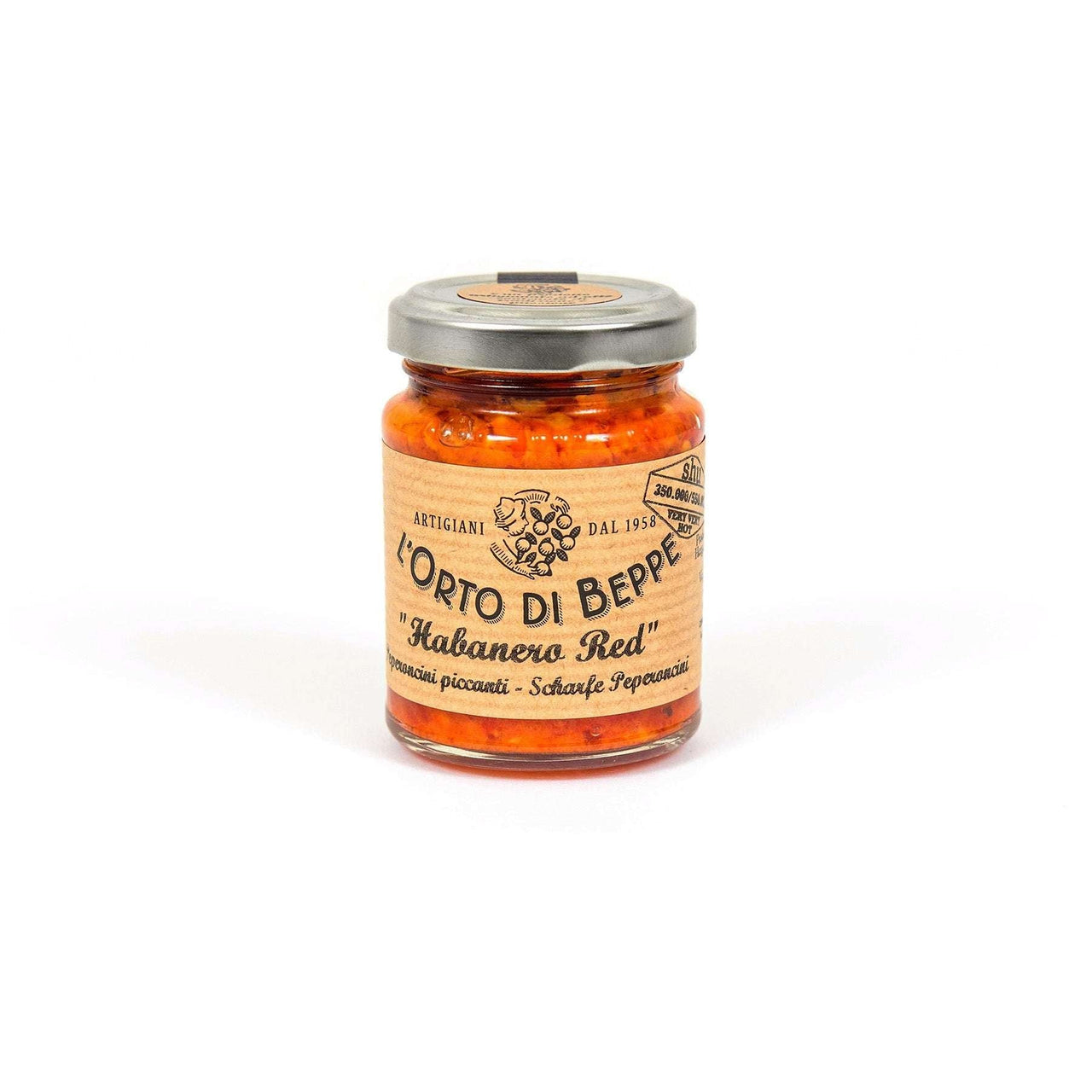 Peperoncini Piccanti `Habanero Red ´ - Chili-Liebhaber werden begeistert sein von dieser würzigen, scharfen Paste aus roten Habanero-Chilischoten! Sie bietet eine intensive Schärfe und ein feuriges Aroma. Eine Geschmacksbombe für alle, die gerne scharf essen! Die Paste wird aus reifen, roten Habanero-Chilischoten hergestellt, die für ihre extreme Schärfe und ihren intensiven Geschmack bekannt sind. Die leuchtend rote Farbe spiegelt optisch ihre Schärfe wider. Genau das Richtige für Suppen, Eintöpfe oder Saucen - eine feurige Geschmacksexplosion!
