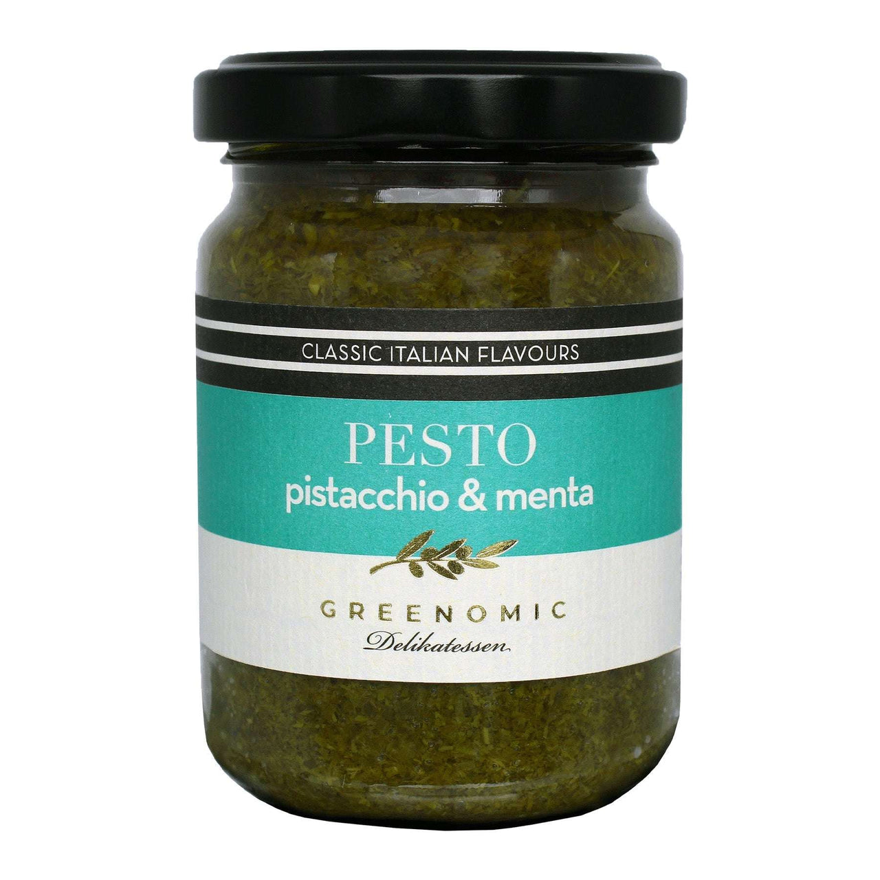 Das Pesto Pistazie & Minze von Greenomic ist eine ungewöhnliche, aber harmonische Komposition, die Liebhaber besonderer Geschmackserlebnisse begeistert. Die Kombination aus fein gemahlenen Pistazien und frischer Minze verleiht diesem Pesto eine leicht süßlich-nussige Note, die ideal zu sommerlichen Pastagerichten passt.
