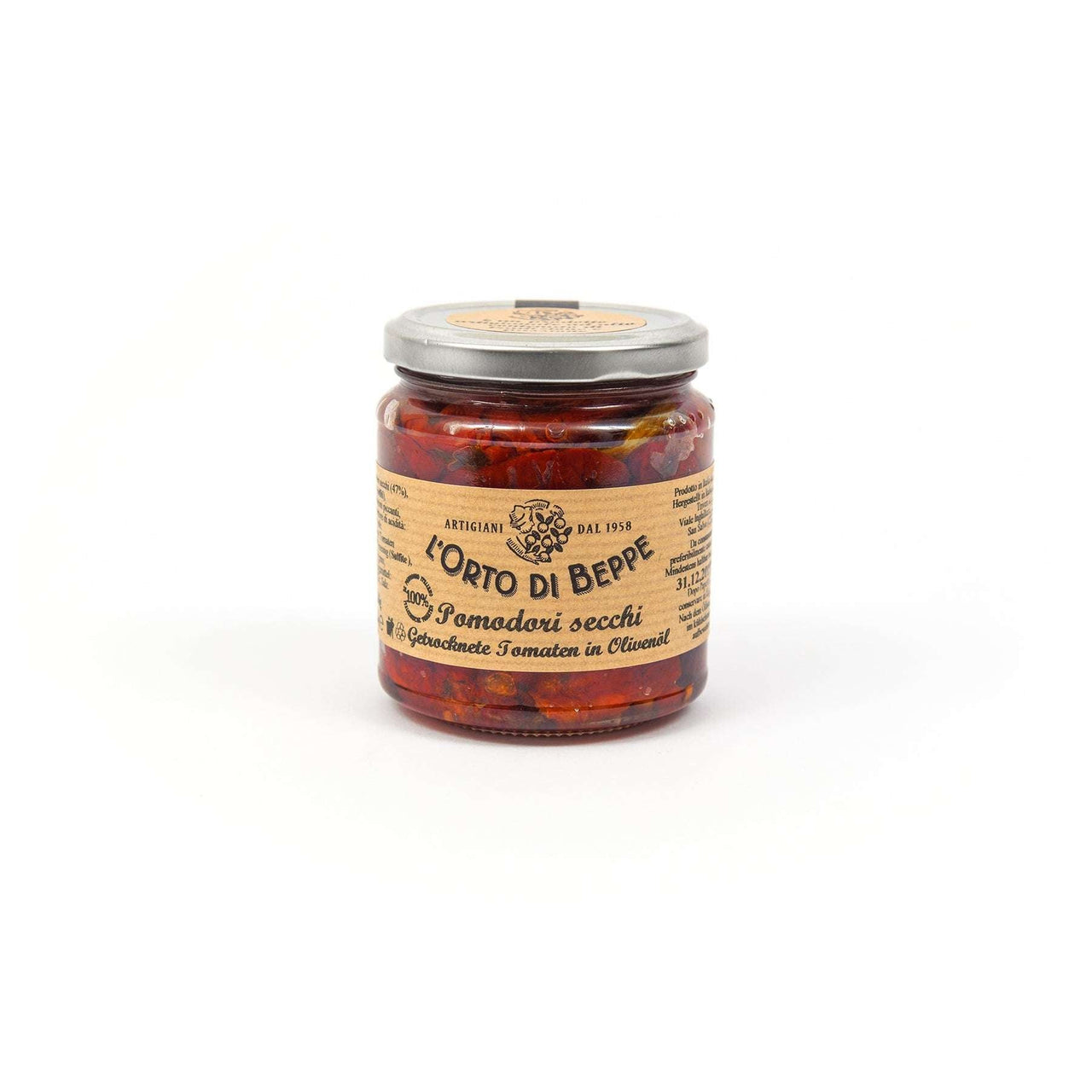 Getrocknete Tomaten, die in feinem Olivenöl eingelegt sind, zählen zu den Klassikern der italienischen Küche. Durch die natürliche Trocknung an der Sonne entwickeln sie ein intensives Aroma, das durch das hochwertige Olivenöl voll zur Geltung kommt.