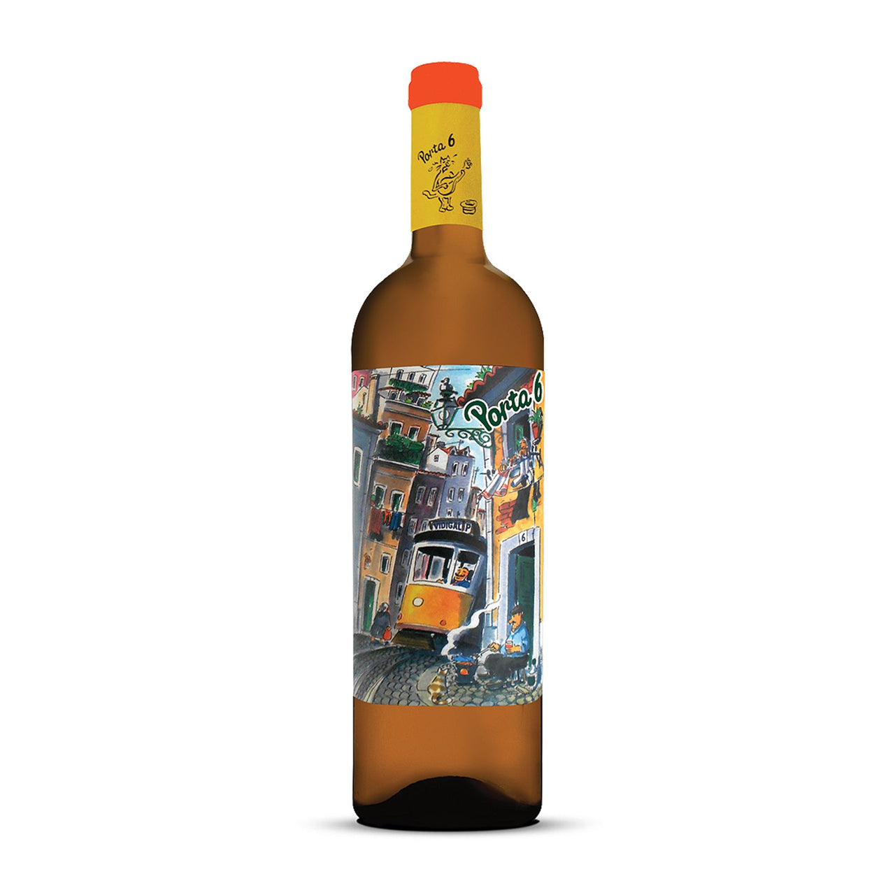 Der Porta 6 Branco des Winzers António Lopes ist ein lebendiger portugiesischer Weißwein, der nicht nur geschmacklich, sondern auch optisch beeindruckt. Das farbenfrohe Etikett im Comic-Stil zeigt eine nostalgische Lissabonner Straßenszene mit der berühmten gelben Tram 28 und ist ein echter Blickfang, der den Charme Portugals widerspiegelt und das Lebensgefühl dieses Weins perfekt einfängt.