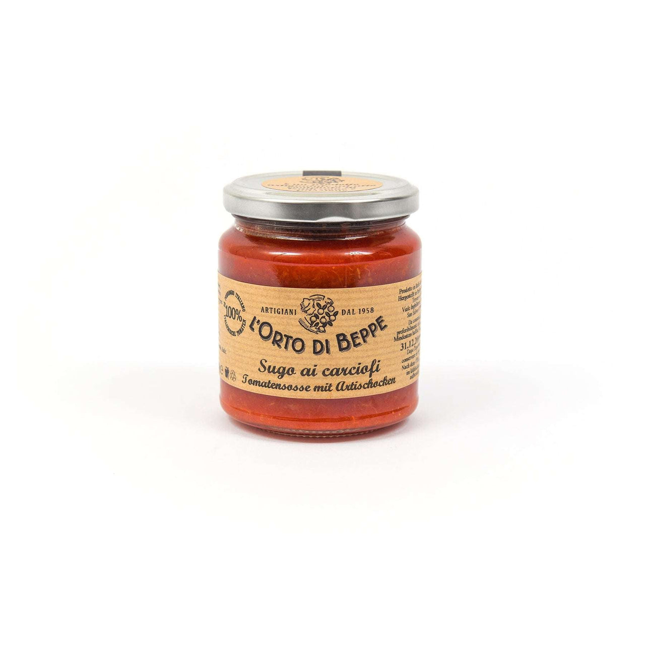 In dieser typisch italienischen Spezialität vereinen sich sonnengereifte Tomaten und zarte Artischocken zu einem aromatischen Genusserlebnis: Der Sugo ai carciofi wird traditionell in Italien hergestellt und bringt mediterranes Flair direkt auf Ihren Teller. Die Kombination aus fruchtiger Tomatensoße und feinen Artischockenherzen ergibt eine besonders ausgewogene Sauce, die sich hervorragend zu Pasta oder Gnocchi eignet und auch als Basis für kreative Gerichte verwendet werden kann.