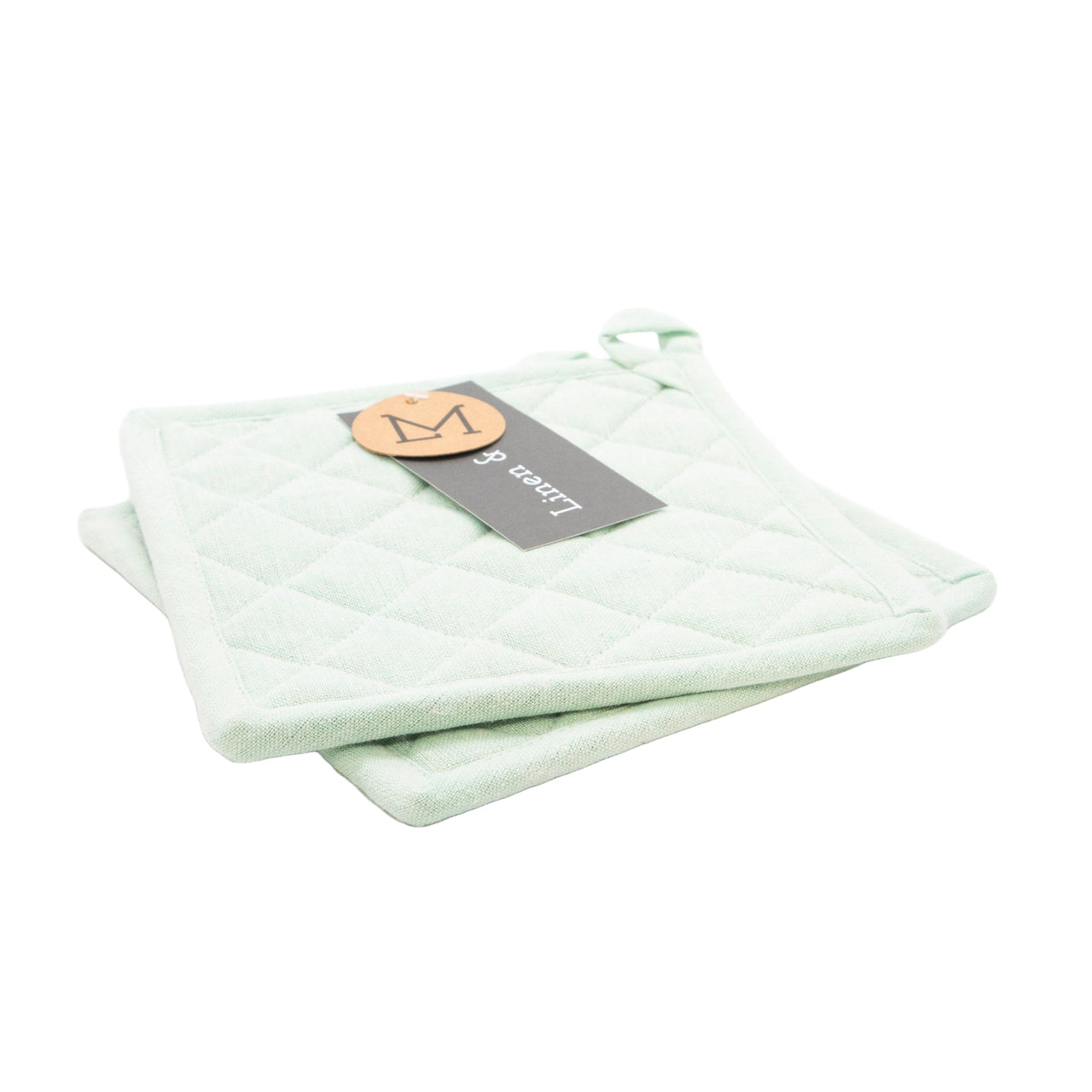 Verleihen Sie Ihrer Küche mit diesem Topflappen-Set in zartem Hellgrün einen frischen, natürlichen Akzent. Die beiden quadratischen Topflappen aus Baumwolle sind nicht nur optisch ein Hingucker, sondern auch praktische Helfer beim Kochen, Braten oder Grillen. Die freundliche Farbe bringt Leichtigkeit in jede Küche - egal ob modern oder klassisch.