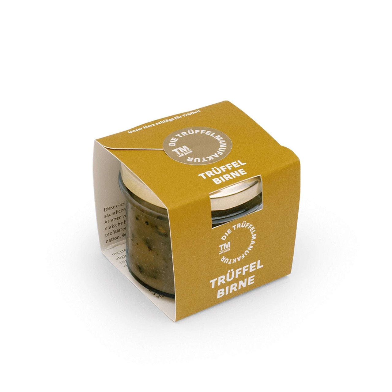 Trüffel Birne - Lassen Sie sich verzaubern von dieser einzigartigen Kombination aus der reifen, leicht säuerlichen Süße der Birne und dem erdig-nussigen Aroma des Trüffels! Dieses exquisite Birnenkompott, verfeinert mit 10% Trüffel, hebt einen Klassiker aus Großmutters Küche in eine neue kulinarische Dimension.