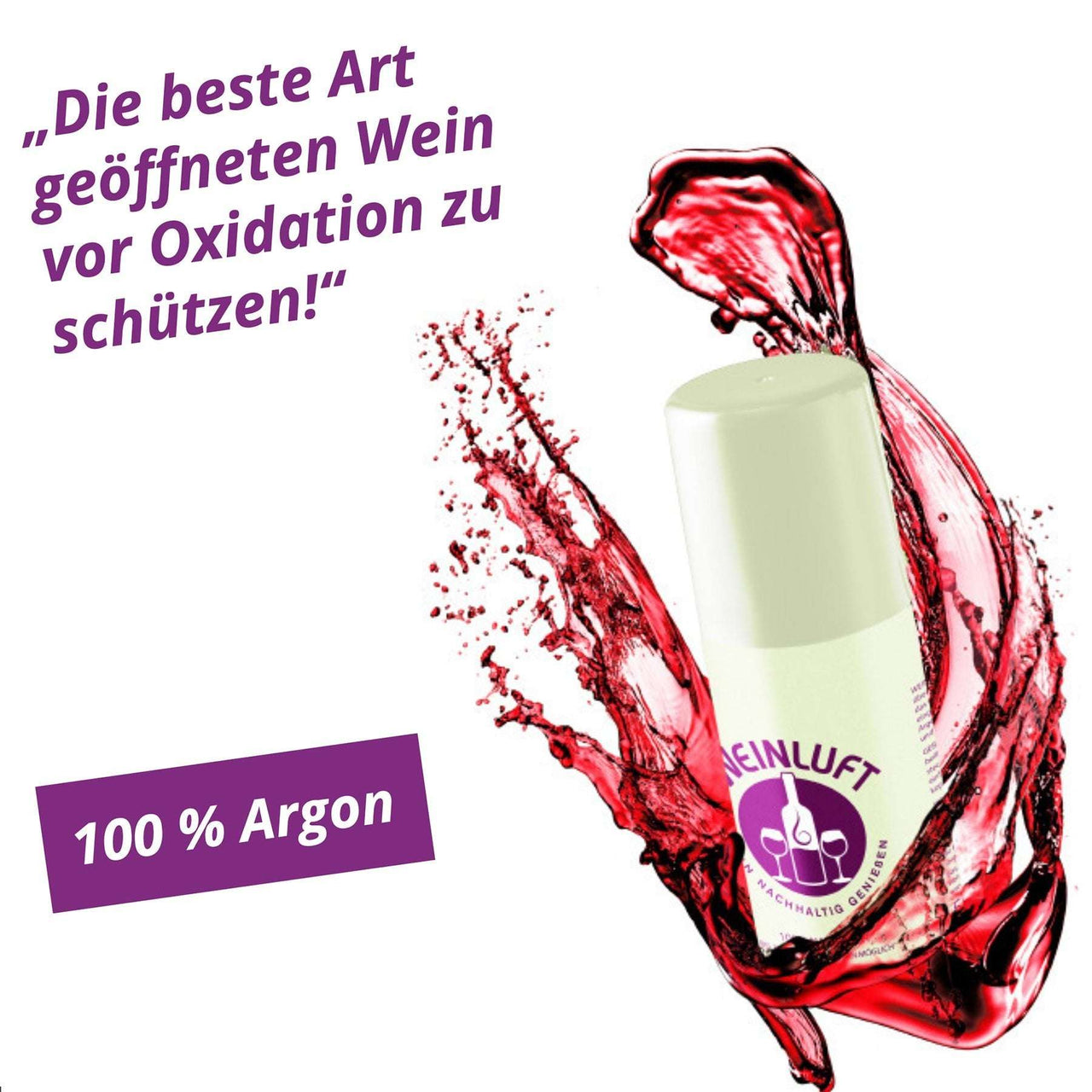 Mit Weinluft bewahren Sie die Frische und das Aroma Ihres Lieblingsweins – ganz einfach per Knopfdruck. Das Weinspray enthält 100 % reines Argon, das schwerer als Luft ist und sich so schützend auf die Weinoberfläche legt und eine Oxidation zuverlässig verhindert.